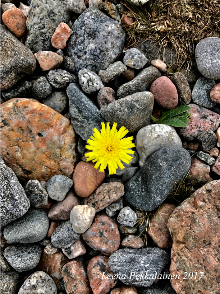 I took this photograph at the end of summer. It was one of the last warm days before autumn. We walked on a sandy road on a rocky island. The sky was getting cloudy and there was a feeling of rain in the air. And then I saw this tiny little yellow flower, searching for the sun. It reminded me of life.
